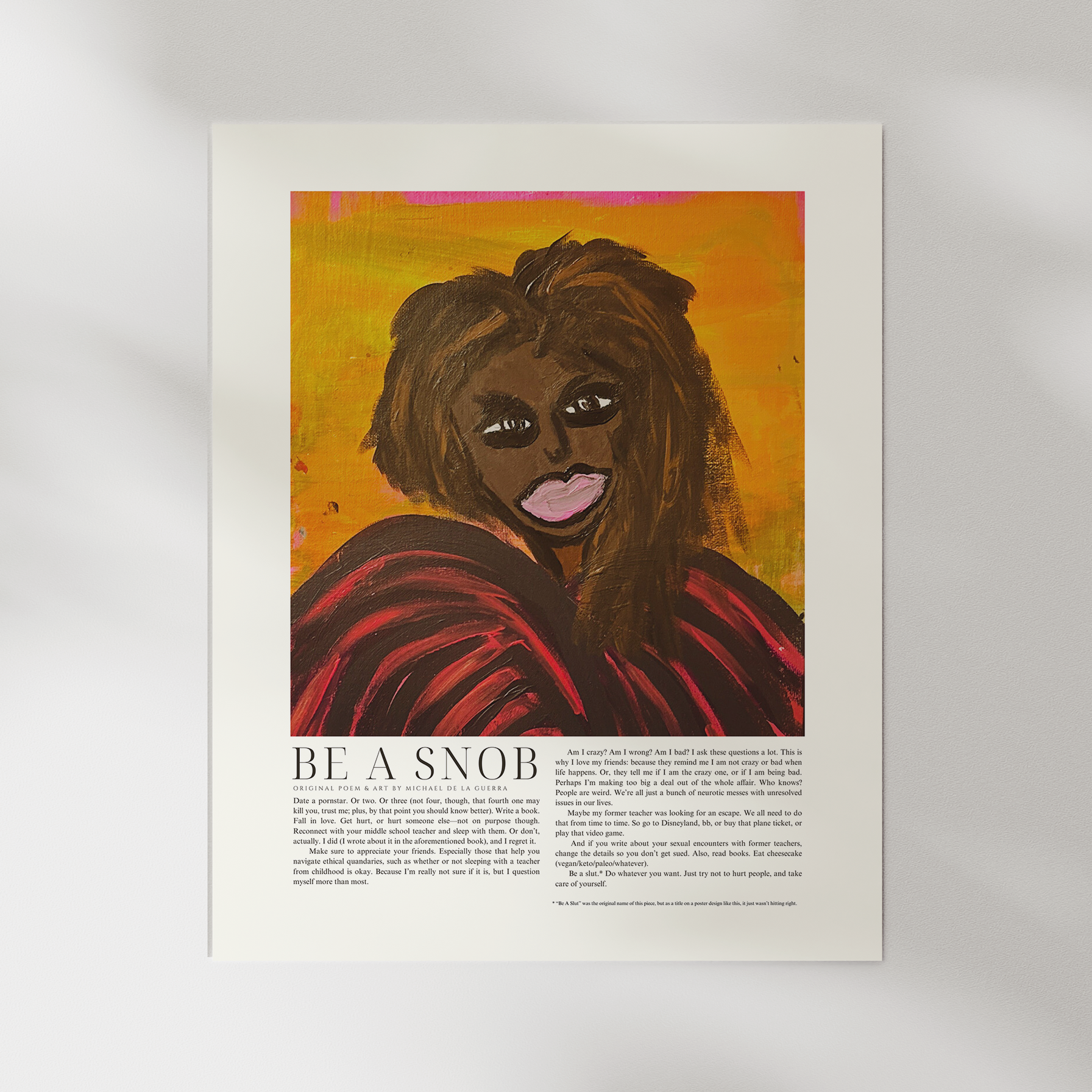* “Be A Slut” was the original name of this piece, but as a title on a poster design like this, it just wasn’t hitting right.
