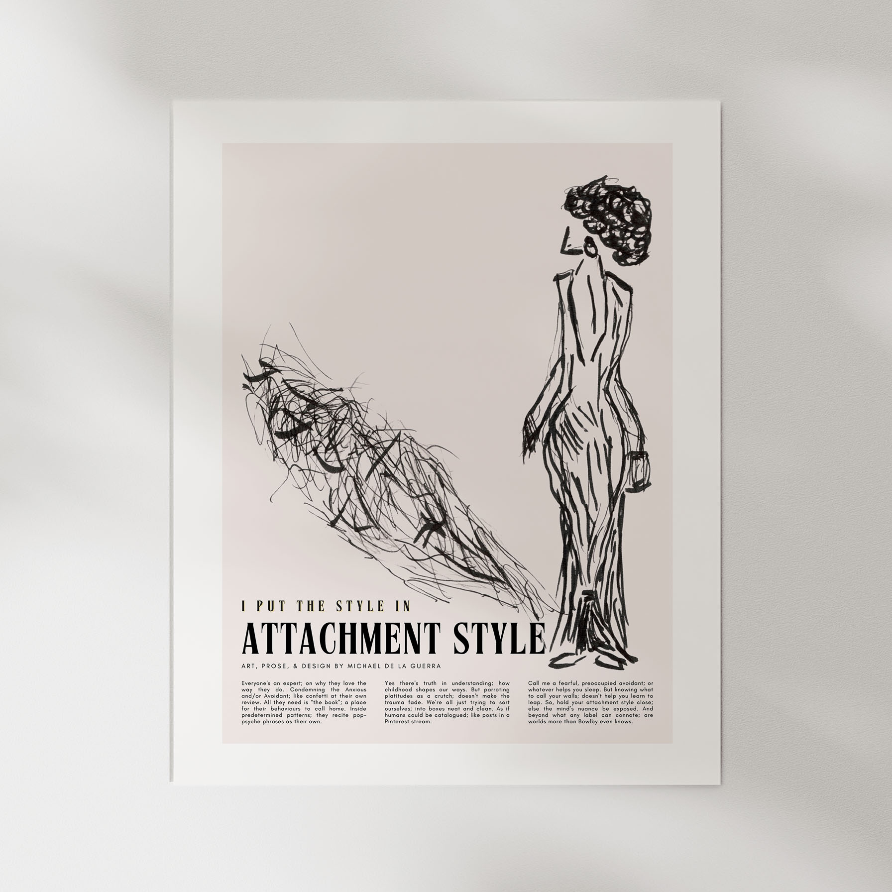 Call me a fearful-preoccupied-avoidant; or whatever helps you sleep. But knowing what to call your walls; doesn't help you learn to leap. So, hold your attachment style close; else the mind’s nuance be exposed. And beyond what any label can connote; are worlds more than Bowlby even knows.